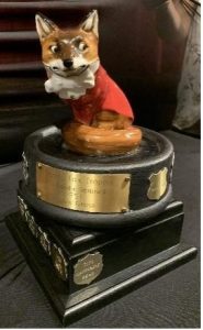 The Reddy Fox Trophy was donated in 2004 to recognize the Low Score for Age 75+. This is a Royal Doulton figurine that has been mounted on a wooden base.